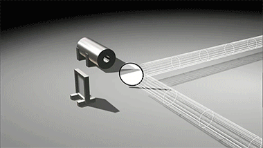 (평소에는 다시 돌아와 한 곳에서 만난 레이저가 상쇄되어 사라짐)