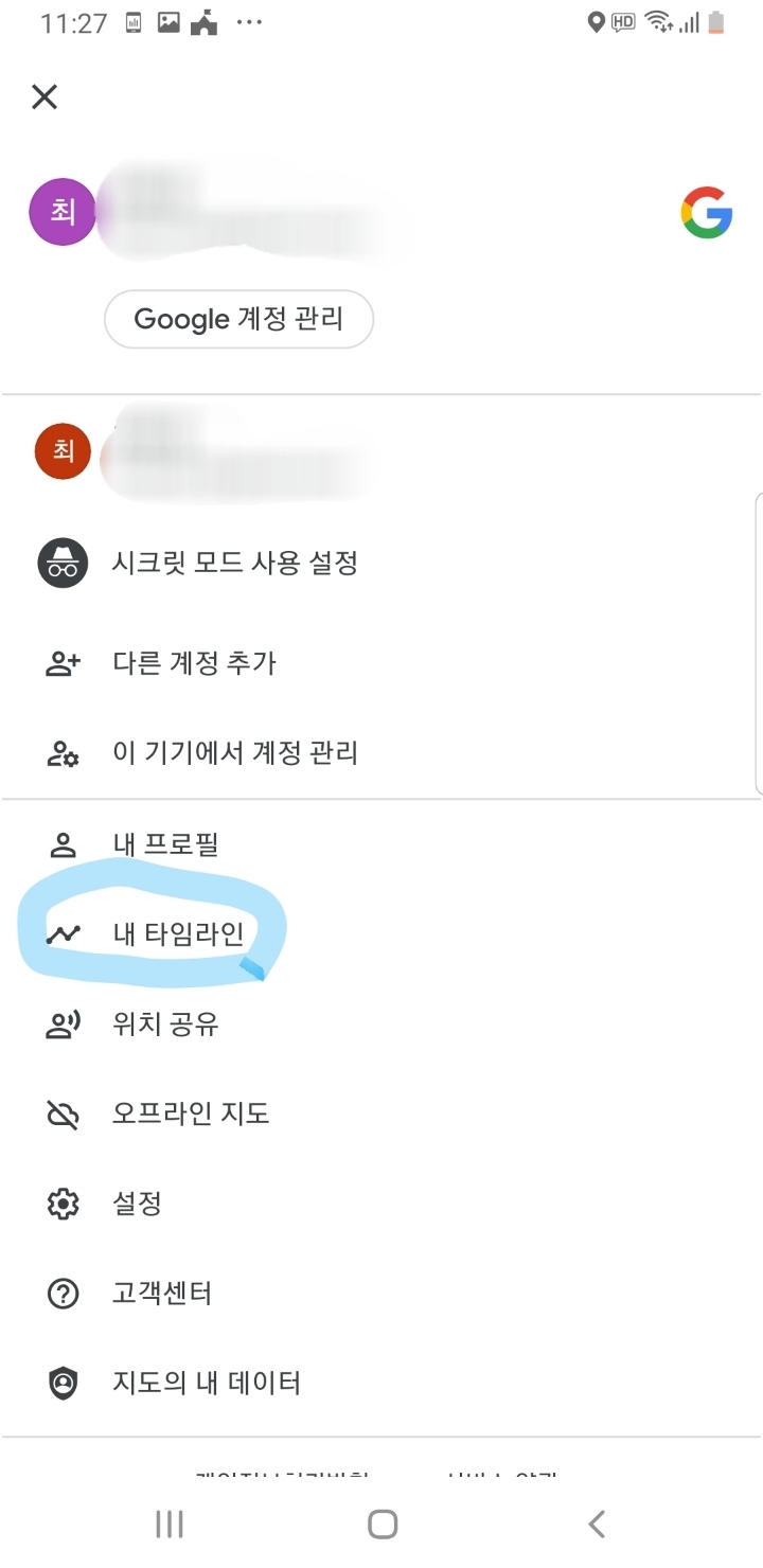 일단 구글맵 켜고 오른쪽 상단 프로필 들어가